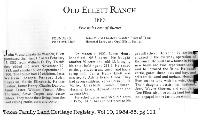 Source: Texas Family Land Heritage Registry, Vol 10, 1984-85, pg 111