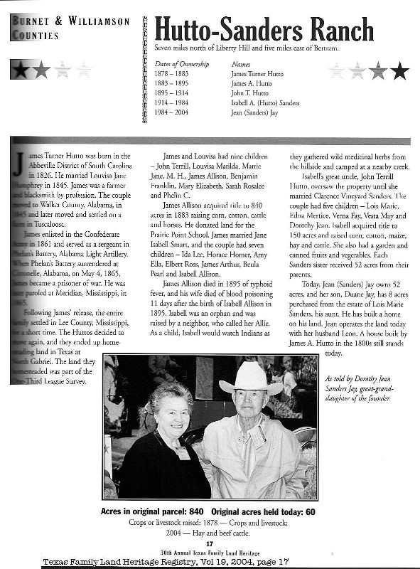 Source: Texas Family Land Heritage Registry, Vol 19, 2004, page 17