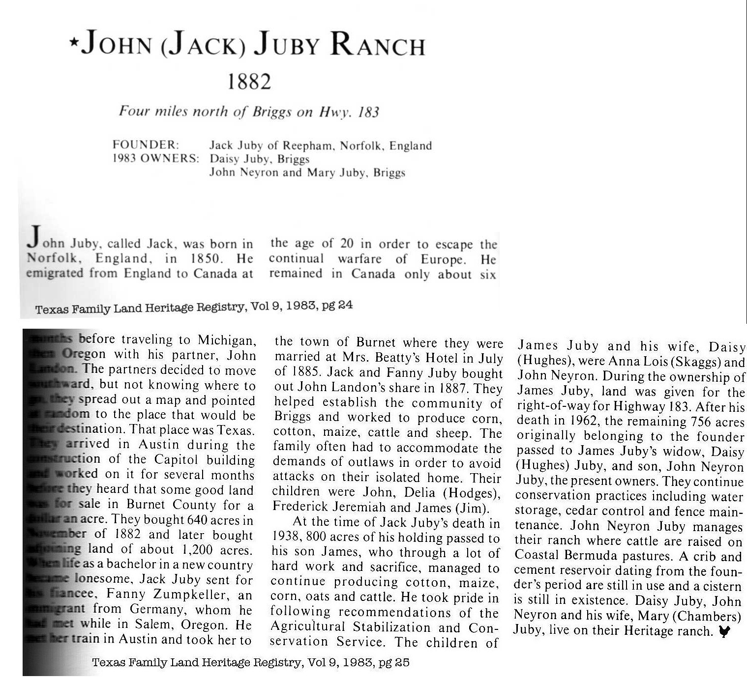Source: Texas Family Land Heritage Registry, Vol 9, 1983, pages 24 and 25