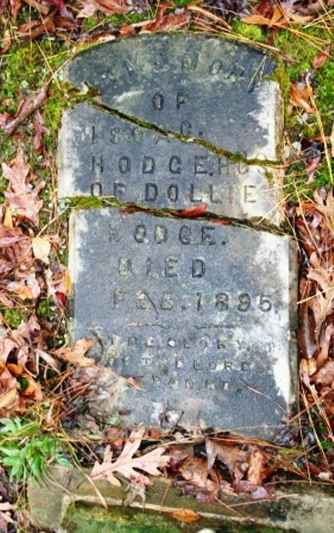 Stone broken & laying on the ground in 3 pieces; H/o Dollie |