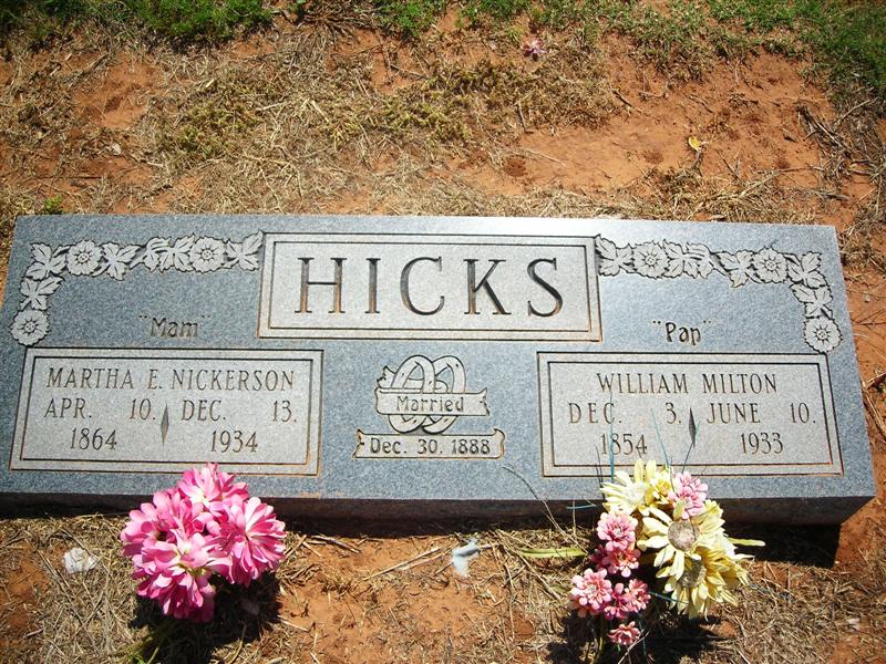 Hicks, William Milton m. Dec 30, 1888   Dec 3, 1854   June 10, 1933