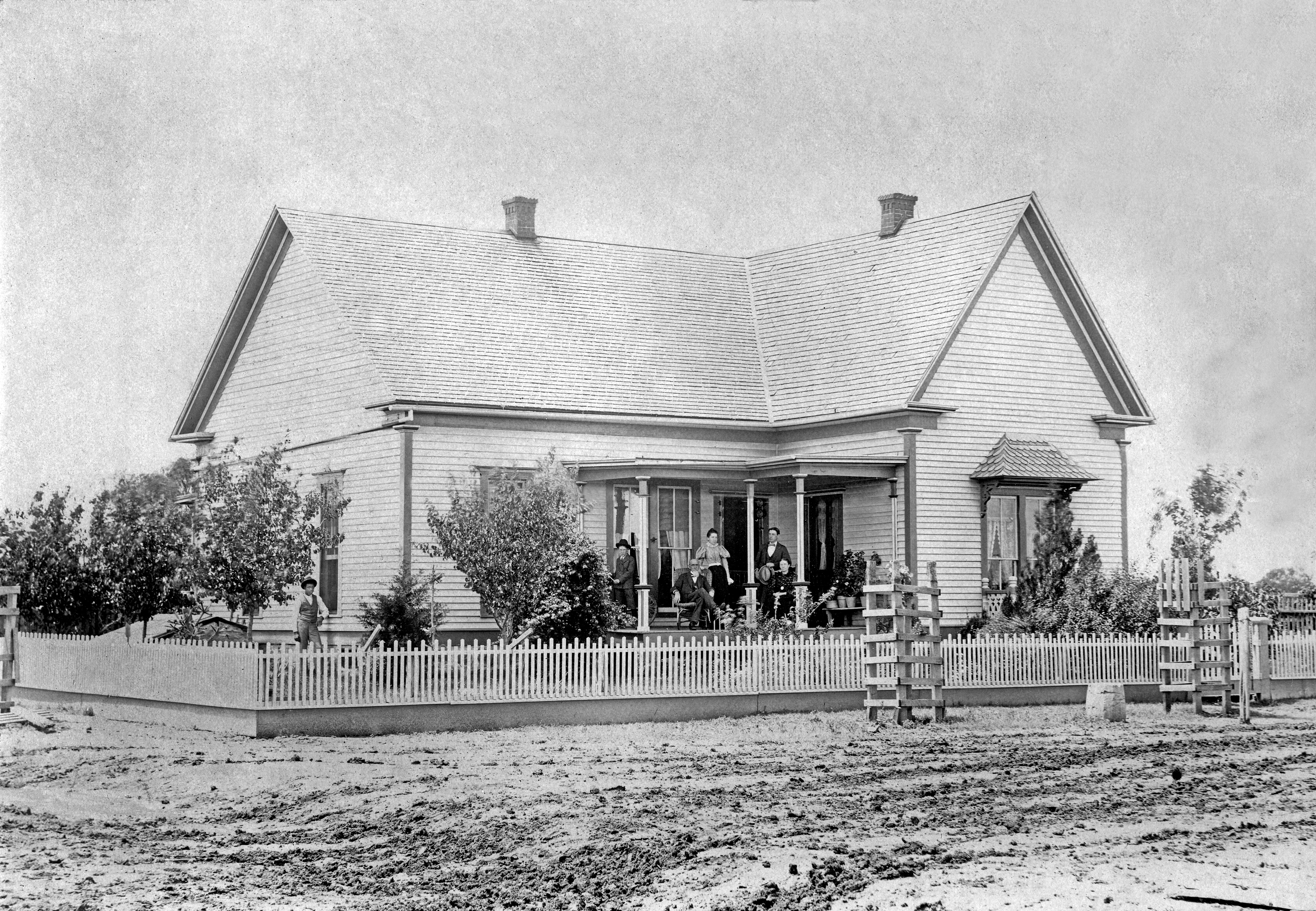 Soon after moving to Coleman from De Leon, and opening a business, J. E. Stevens (see The J. E. Stevens Family) built this dwelling at what became 201 North Blanco Street. ![]() J. E. Stevens Home, taken about 1894 Unknown Yard Boy at left, J. E. Stevens, Ann Frances (Campbell) Stevens (seated), Frank E., Mary Alice, and either Thomas or William (rear)