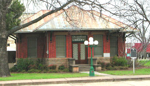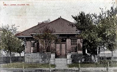 "The Public Library was located on West Live Oak Street, on the north end of South Commercial Avenue, between East and West Streets (this is the northwest corner of the Courthouse Square). Mrs. M. B. Miller was the librarian." (Coleman City Directory, 1929 - Hudspeth.)