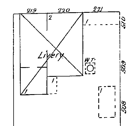 By 1898, the stable was under one roof and an open shed added to the northwest corner.  The water tower had been moved northwest.