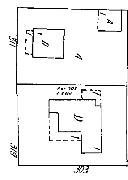 Sometime between 1930 and 1948 the north and south halves of this lot, which had been addressed as 303 (or 301) E. Elm Street, was partitioned into two house sites, with the north half being addressed at 311 San Saba Street. A house was built here before 1948.