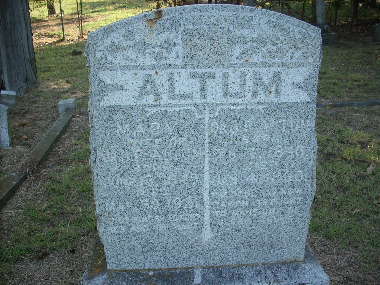 | Altum | Mary | 6/13/1845 | 3/30/1921 | God's finger touched her and she slept | 8 | |