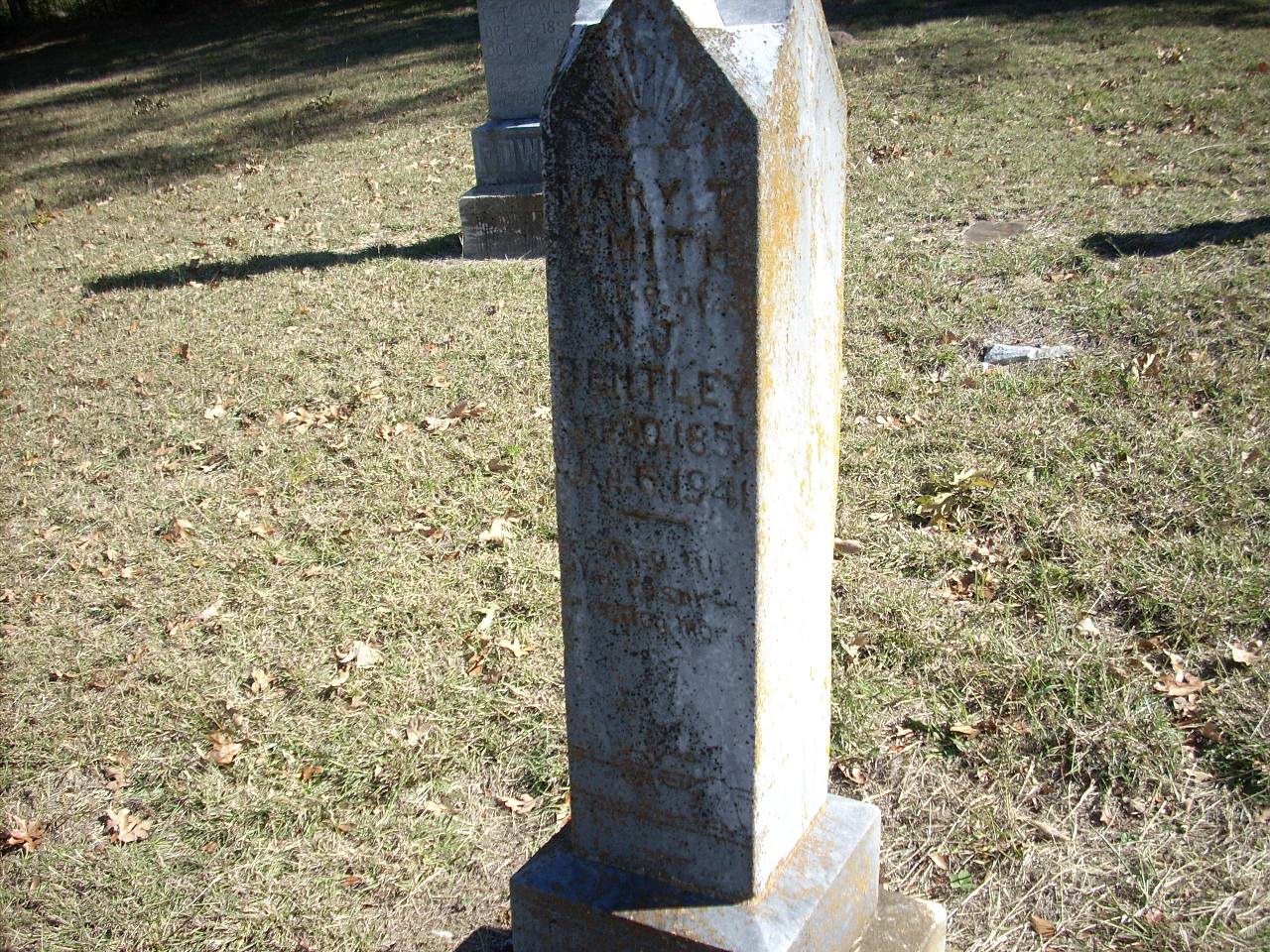 | Bentley | Mary T. Smith | 9/30/1851 | 1/6/1941 | Photo | Resting till the resurrection morn | 36 |
