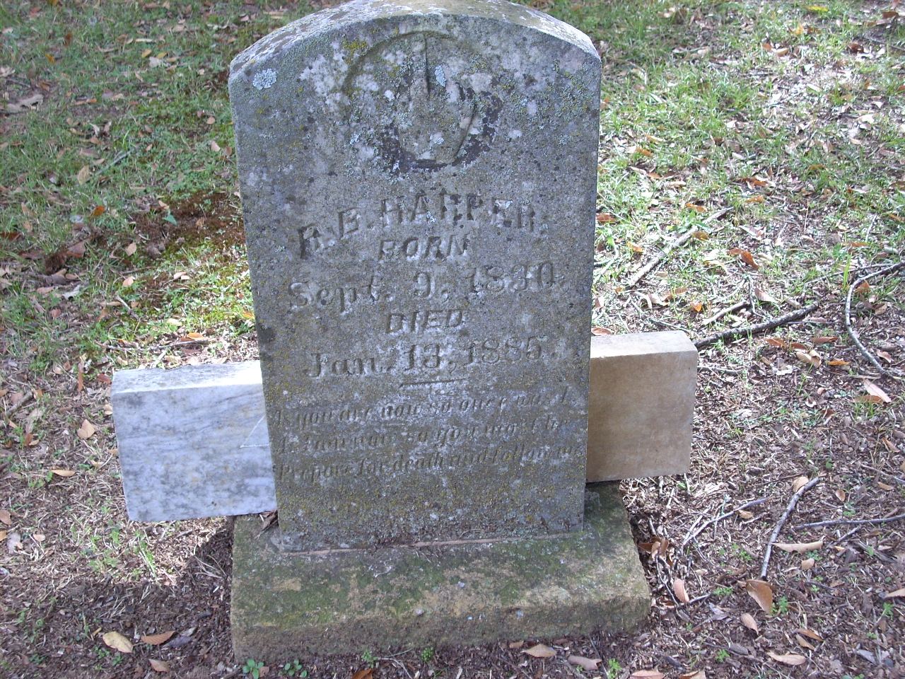 | Harper | R.B. | 9/9/1830 | 1/13/1885 | Photo | As you are now so once was I…so young…Prepare for death & follow me. | |