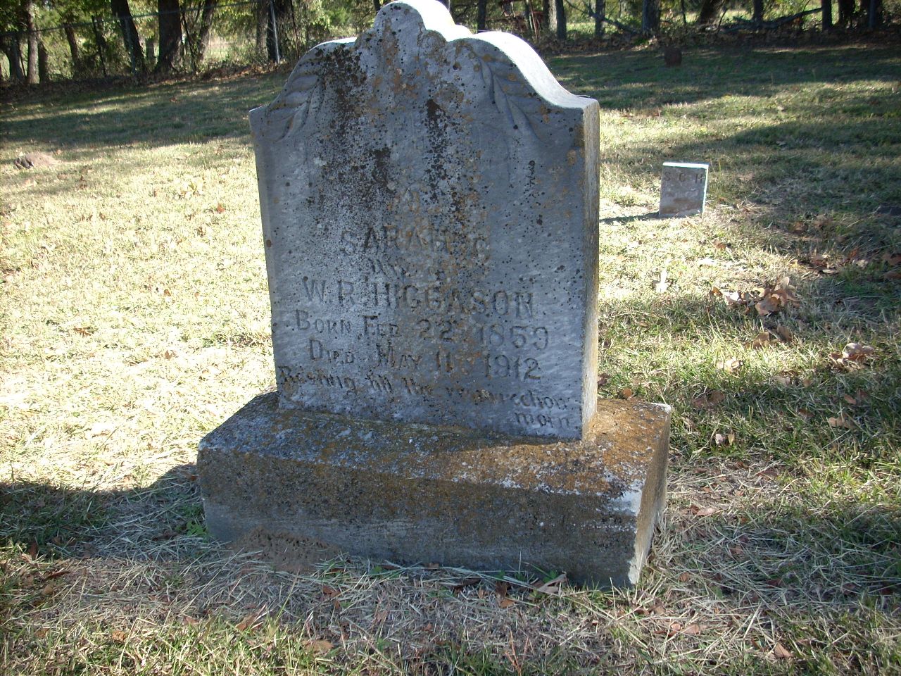 | Higgason | Sarah C. | 2/22/1859 | 5/11/1912 | Photo | Resting till the resurrection morn | 30 |