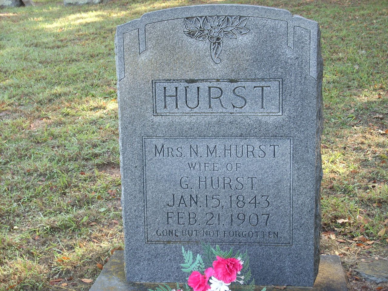 | Hurst | Mrs. N.M. | 1/15/1843 | 2/21/1907 | Photo | Gone but not forgotten | 48 |