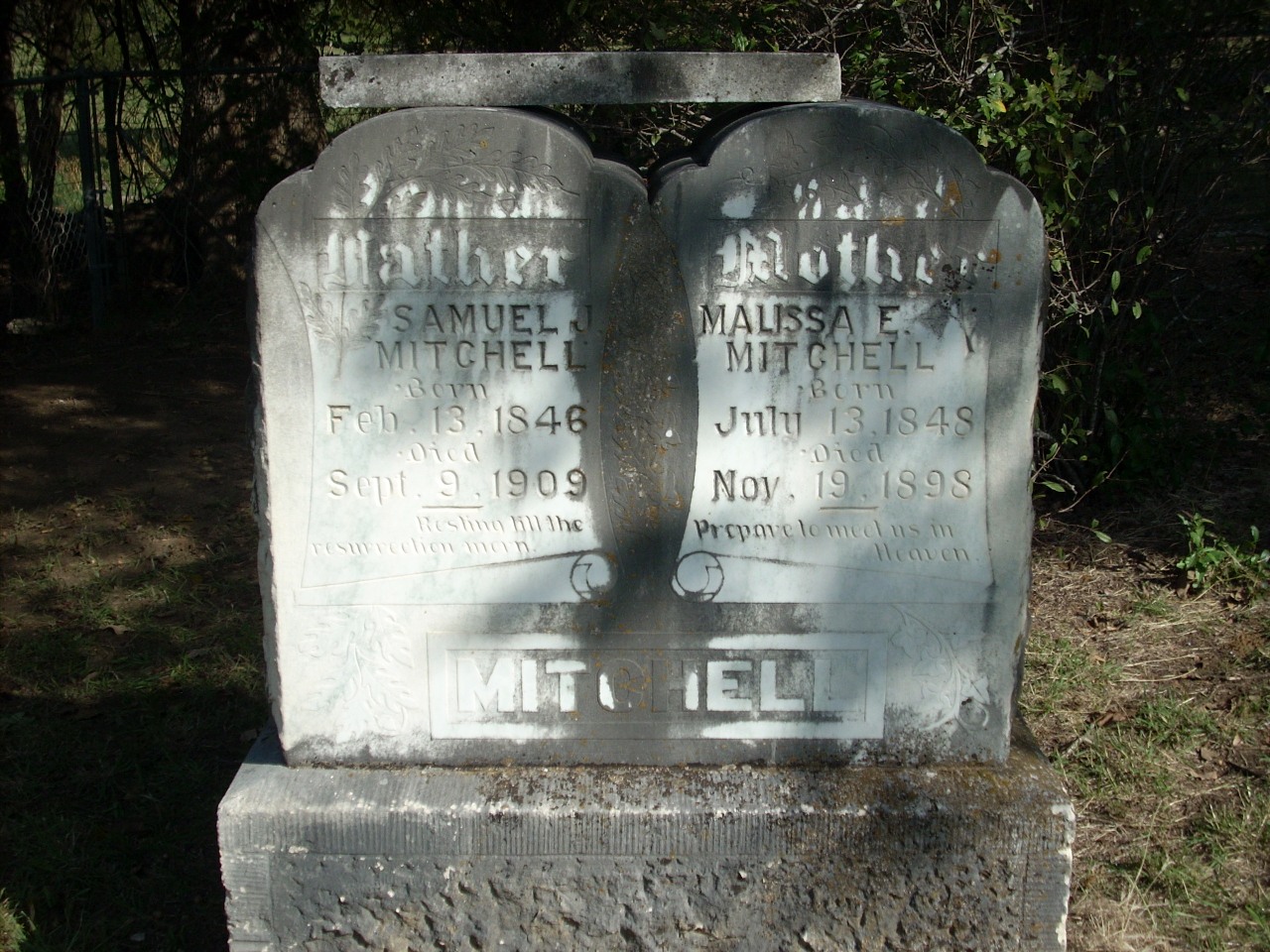| Mitchell | Malissa E. | 7/13/1848 | 11/19/1898 | Photo | Prepare to meet us in heaven | |