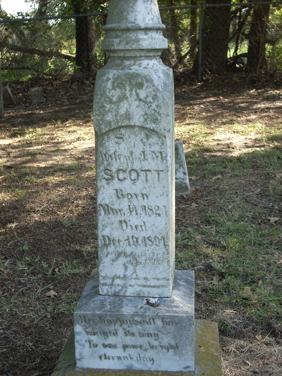 | Scott | S.J. | 3/11/1824 | 12/19/1891 | Photo | Her happy soul has winged its way to one pure bright eternal day | 16 |