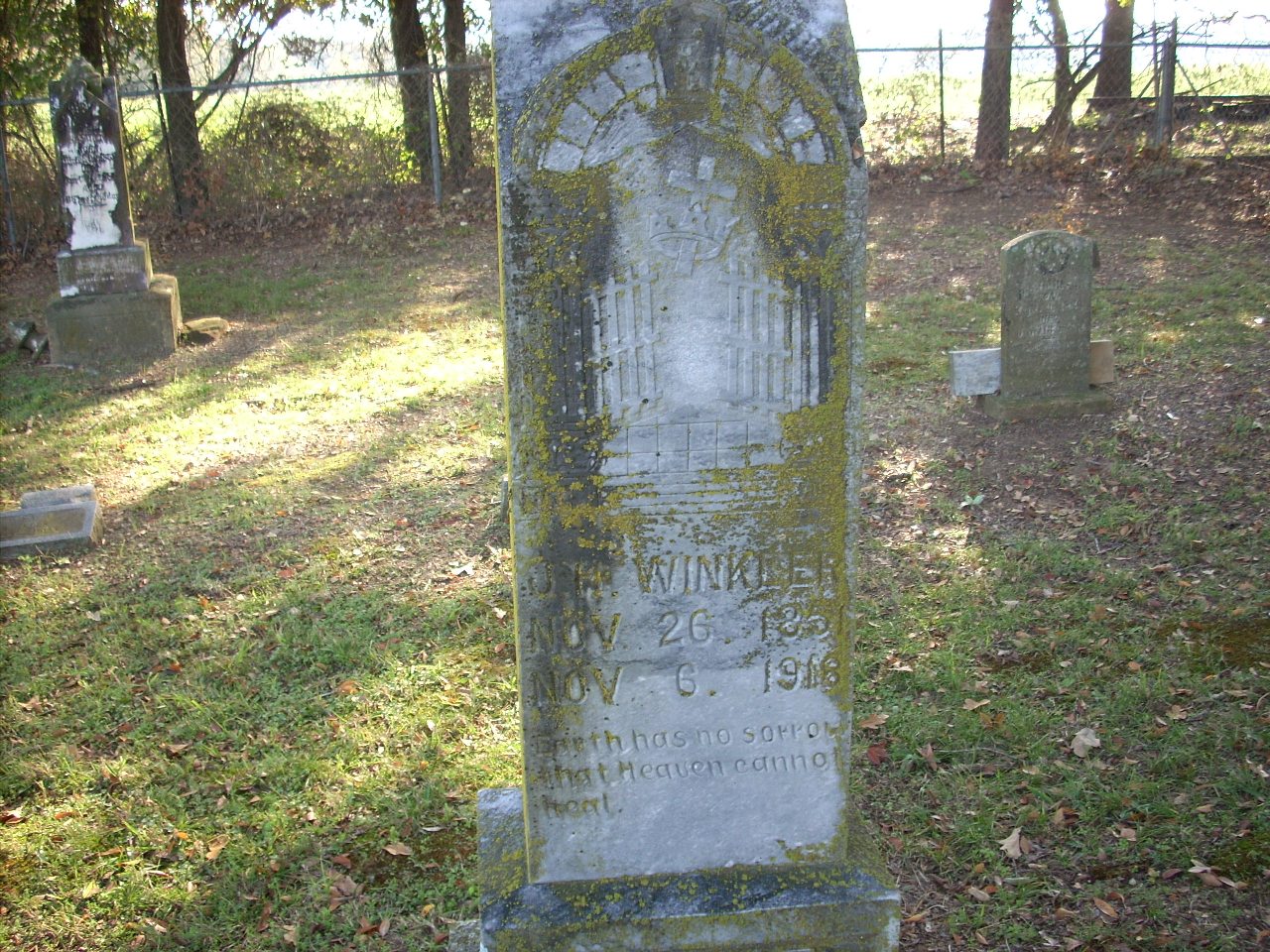 | Winkler | J.H. | 11/26/1851 | 11/6/1918 | Photo | Earth has no sorrow that heaven cannot treat | |