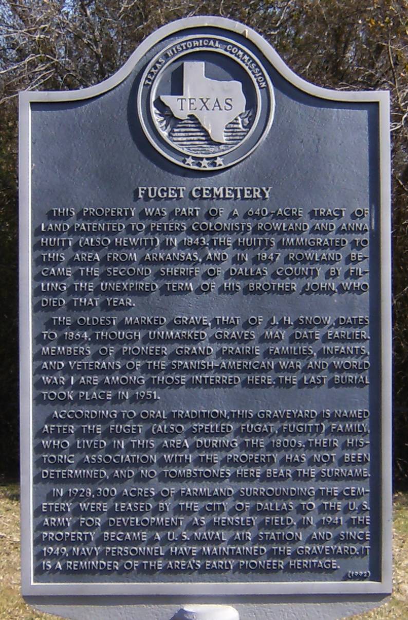 According to oral tradition, this graveyard is named after the Fuget (also spelled Fugat, Fugitt) family, who lived in this area during the 1800s. Their historic association with the property has not been determined, and no tombstones here bear the surname.
