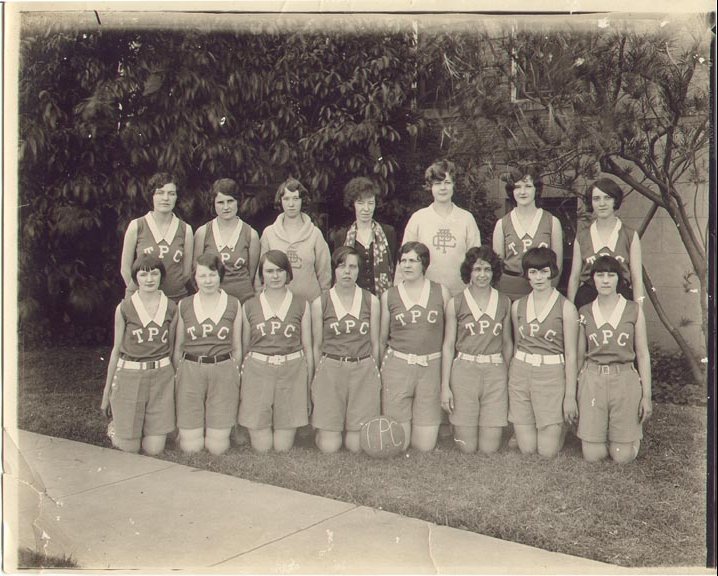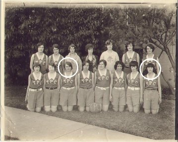 1928 Girl's Basketball Team We believe this to be the 1928 team from Texas Presbyterian College in Milford, TX Only two girls can be identified: