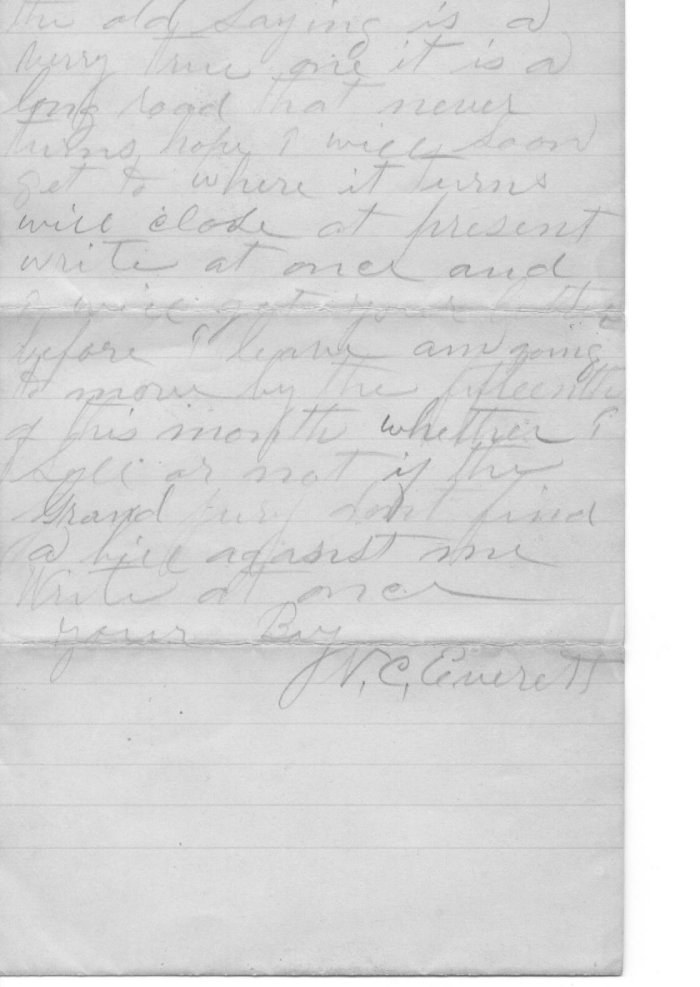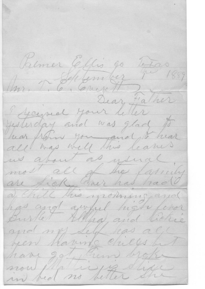 Letter from Nick Cook Everett to his father in Mt. Juliet, Wilson Co., TN