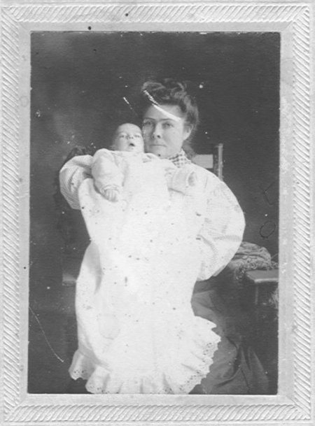 Aunt Nettie [HOWELL] LOVE and Robert, grandbaby, written on back of picture. Probably taken around 1915 in Fort Worth, Tarrant County, TX. |