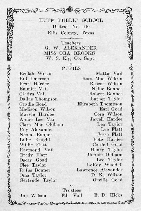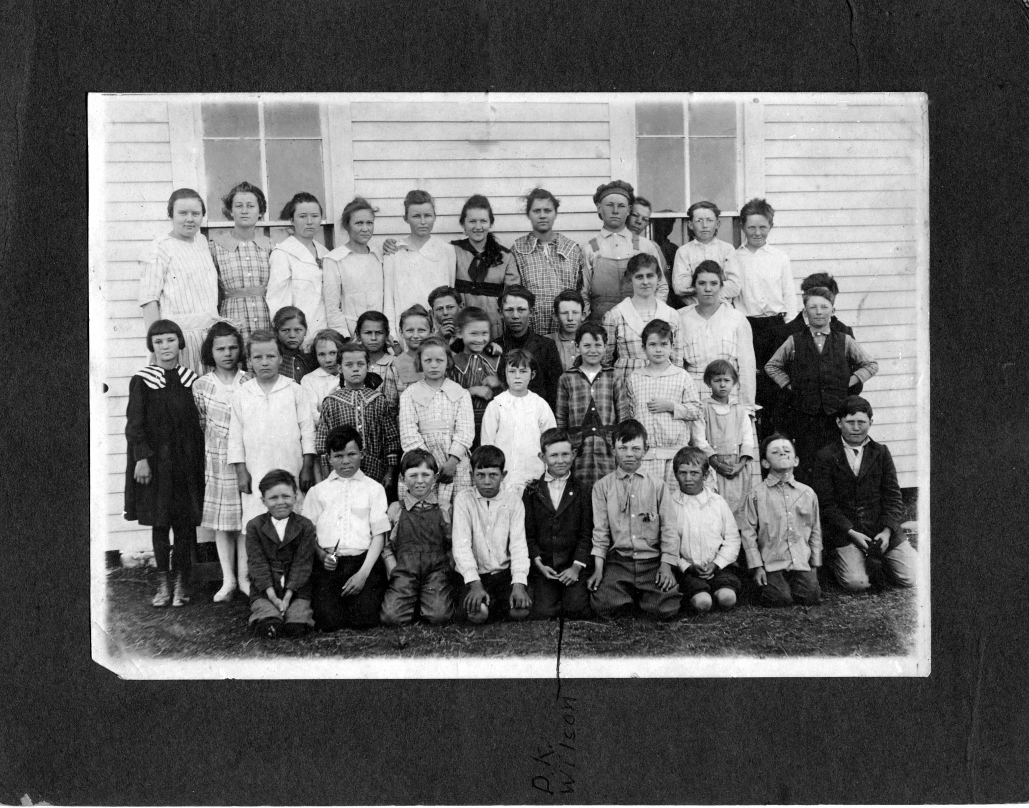 I only recognize one of the students and that is my dad, D. K. Wilson. The student roll shows that all of my dad's brothers and sister are there except two. One was deceased and the other was two young to go to school. Maybe the exposure would get the rest of the students matched up with their names. I don't recognize my aunts and uncles until they are much older.