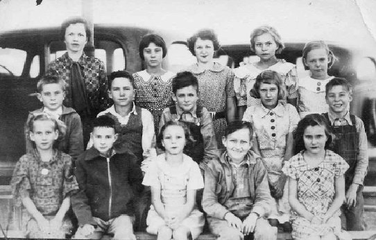 India School - India, Texas Bottom row, left to right - Barnie Marie Feaster, Barney W. OBriant, Ruth Dixon, James Wickliffe, and Louise Wickliffe. Middle row- Raymond Priddy, J. H. McKay, Howard Wickliffe, Mary Frances Turner, Weldon Priddy. Top row - Miss Myers, June Rose Allen, Lucille Singleton, Lillian Fisher, Frances Mohundro. Picture courtesy of Barney W. OBriant |