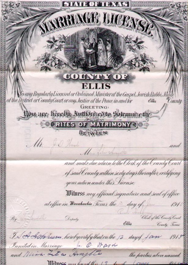 Ward-Amytte Marriage License