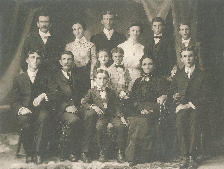 McNeil Family This is a photo of the Alfred E. McNeil (April 20 1853 - July 15, 1923) and Frances Y. McNeil (February 10, 1857 - July 22, 1932) family of the Ensign community, Ellis county Texas. They are both buried in Myrtle Cemetery in Ennis along with other family members. Bottom row, far left is Henry Burnett McNeil. He was married to Leona Jane Hogge (not pictured) who was also from the Ensign community.