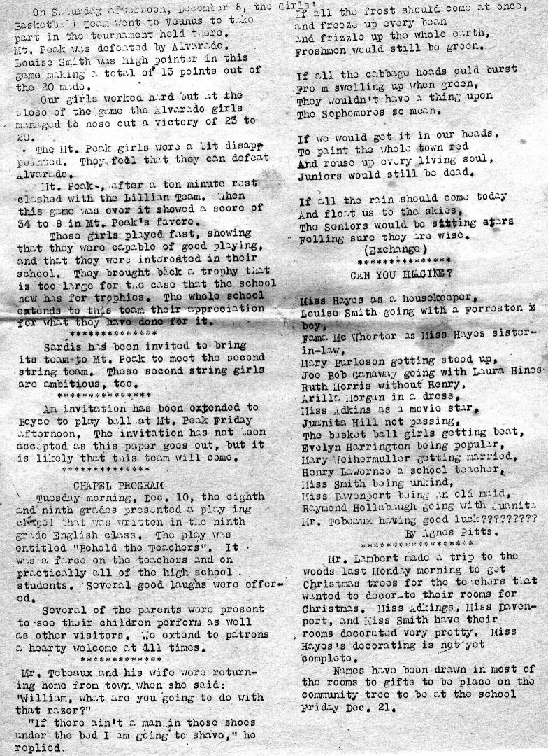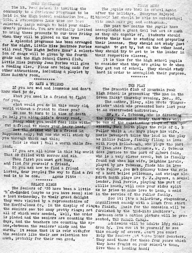 | This 1935 Mt. Peak school paper belonged to Ruth Morris, youngest