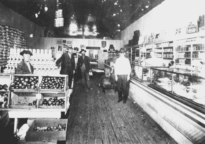 Henry Witherspoon Grocery, downtown Midlothian on Avenue F between 7th and 8th Streets, circa 1900. Mr. Witherspoon was blind, but was supposedly able to change paper money by touch. |