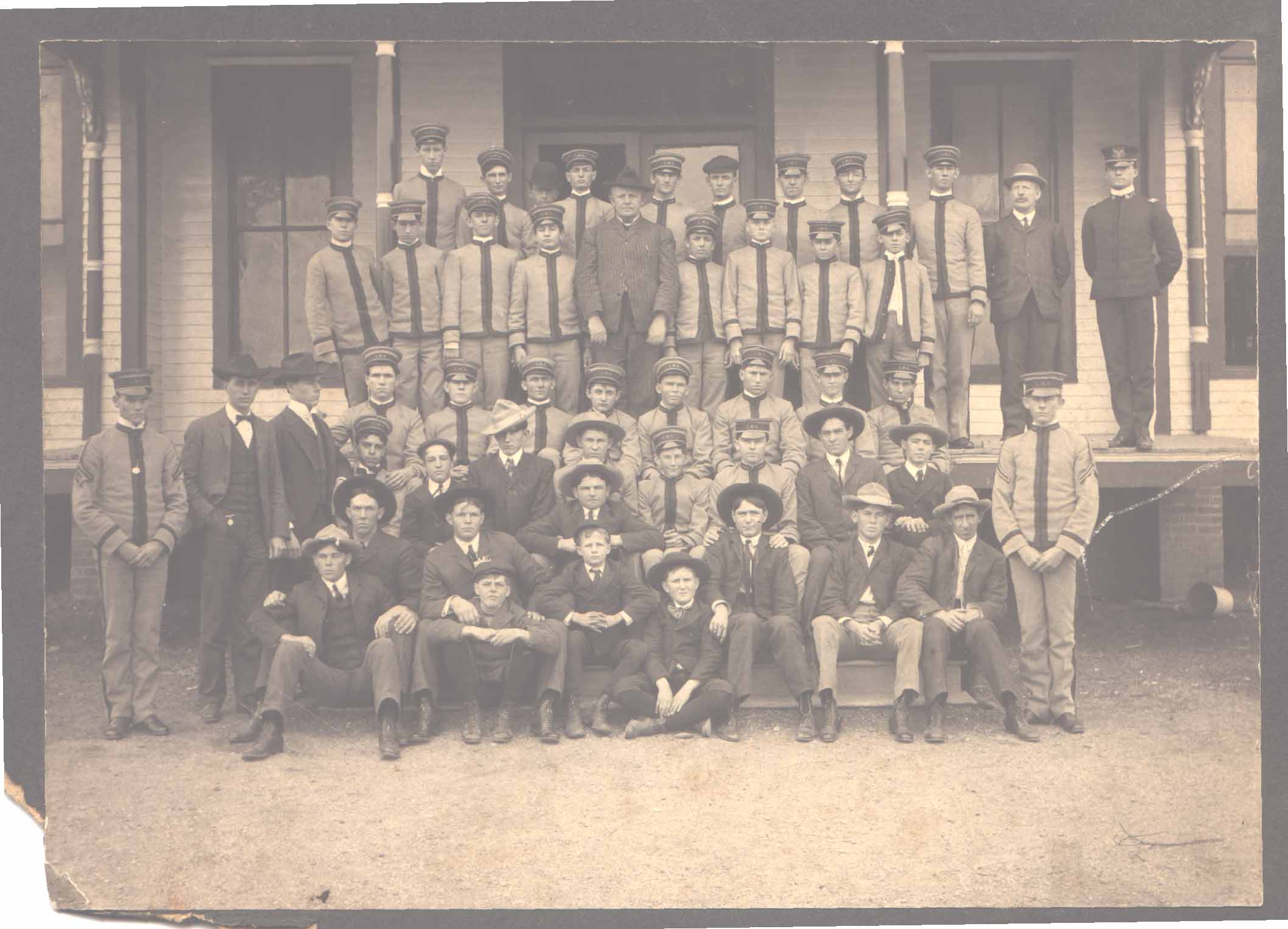 [above] The group of apparent military academy boys and men has no