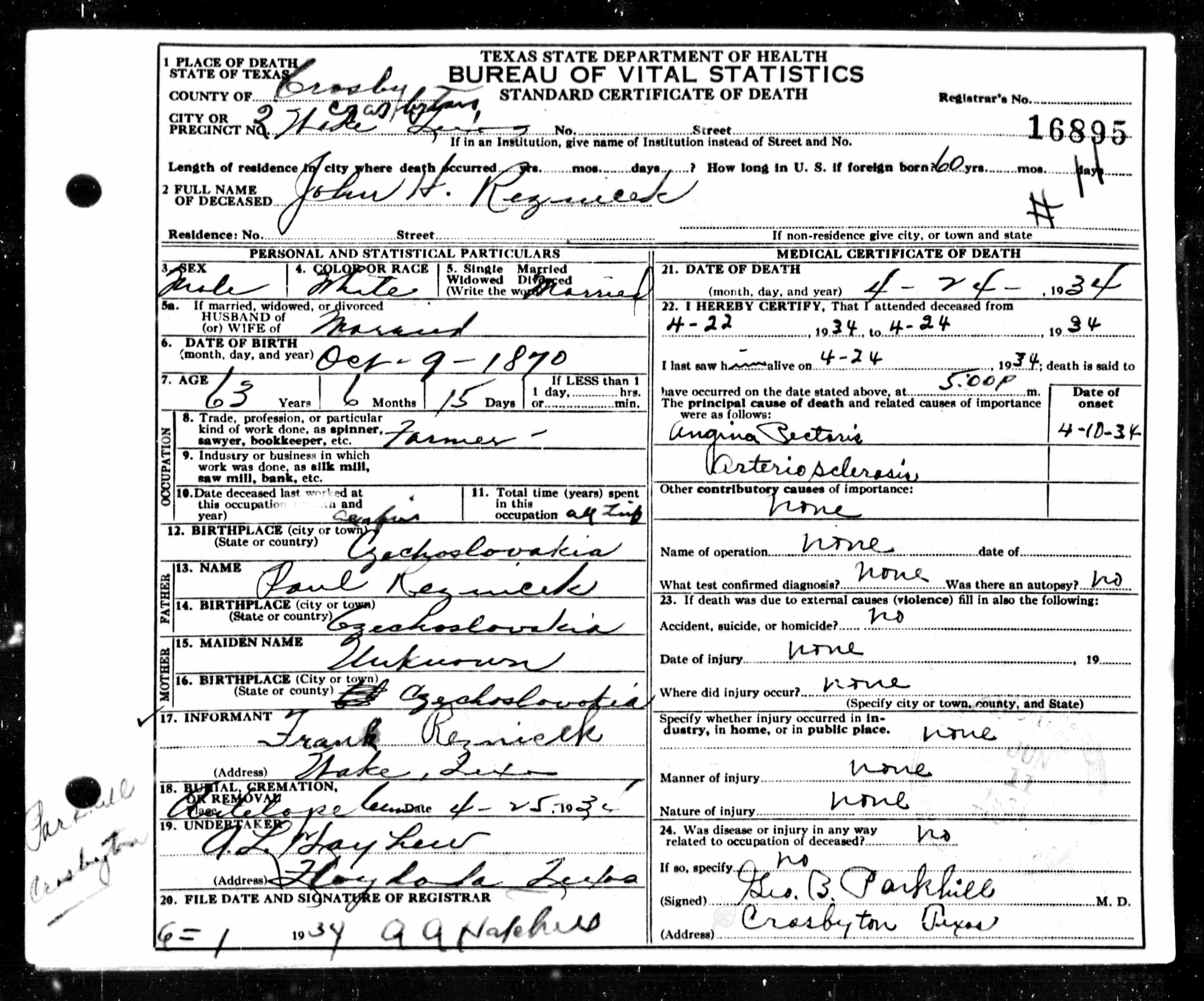 - Died from a self-inflicted wound.