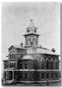 On April 19, 1838, Robert Handy and William Lusk deeded a block of land in Richmond for use as a courthouse square, now located at Morton and 5th streets. No courthouse was built there until 1850. Prior to this courthouse, court met at a house purchased from William Lusk in June 1842, for $600.00. This location has since been washed away by the Brazos River. In 1849, John H. Herndon was appointed to build a new courthouse on the courthouse square for $6000.00, which opened for business in 1850. By the 1870s, this courthouse grew inadequate for the needs of the county so a building on Morton Street was purchased in 1871 from C.H. Kendall. The courthouse filled the lower two floors and the upper floor was used as a Masonic lodge. This building was destroyed by fire in 1887. The fourth courthouse was built on the square in 1888 by B. F. Trester and this was the courthouse that saw the Jaybird-Woodpecker War. It was a two-story brick Victorian courthouse with bell tower and clock that burned ca. 1930.