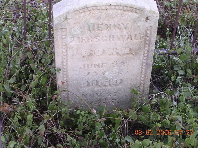 | Bierschwale, Henry | b.June 22, 1845 | d. Nov. 27, 1877 | Row U | Photo |