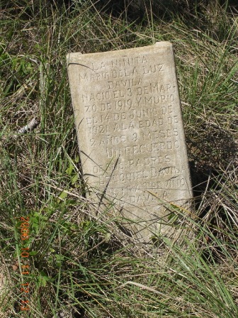 | Davila, Maria de la Luz | b. Mar. 3, 1919 | d. June 14, 1921 | Row D | Photo |