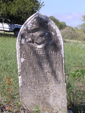| Hatcher, L. T. | b. Mar. 2, 1845 | d. Feb. 9, 1891 | Row H | Photo |