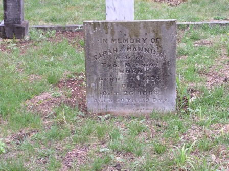 | Manning, Sarah J. | b. Apr. 7, 1834 | d. Oct. 26, 1884 | Row I | Photo |
