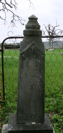 | Bierschwale, (infant son of H. B. and C. E.) | b. Nov. 27, 1877 | d. Dec. 6, 1877 | Row V | Photo |