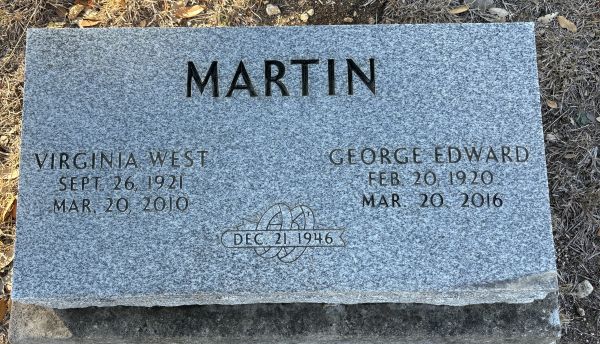 | Martin, Virginia nee West | 26 Sep 1921 | 20 Mar 2010 | NIII | 409 | 004 | Tombstone |