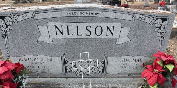 | Nelson, Elwood Striegler, Sr (Woody) | 9 Mar 1919 | 2 May 2014 | NI | 139 | 004 | Tombstone |