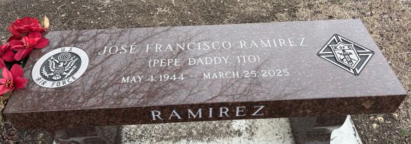 | Ramirez, Jose Francisco (Pepe) | 4 May 1944 | 25 Mar 2025 | NIII | 408 | 023 | Tombstone |