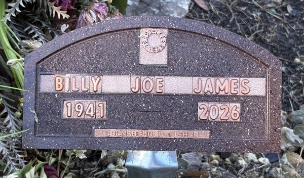 | James, Billy Joe | 21 Apr 1941 | 23 Jan 2026 | Marker | Son of Albert James and Ethel McCourt |