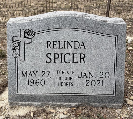 | Spicer, Relinda Georgina nee Blake | 27 May 1960 | 20 Jan 2021 | Tombstone | Daughter of Leroy Blake and Mildred Sams |