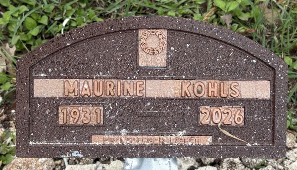 | Kohls, Maurine Eva nee Grosser | 13 Nov 1931 | 10 Apr 2026 | 071C | 005 | Marker | |
