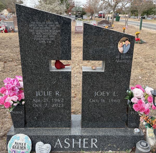 | Asher, Julia Mitchell nee Roberts | 25 Apr 1962 | 6 Oct 2023 | NI | 129 | 001 | Tombstone |