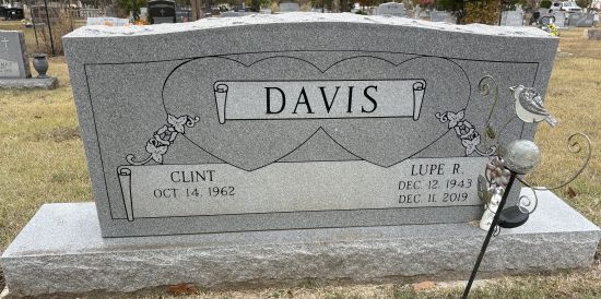 | Davis, Guadalupe (Lupe) Rodriguez | 12 Dec 1943 | 11 Dec 2019 | NI | 1A | 025 | Tombstone |