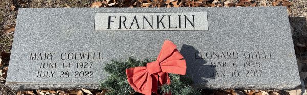 | Franklin, Leonard Odell | 6 Mar 1925 | 10 Jan 2017 | NI | 141 | 002 | Tombstone |