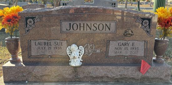 | Johnson, Laurel Sue nee Moore | 21 Jul 1938 | 23 Jun 2015 | NI | 4A | 013 | Tombstone |