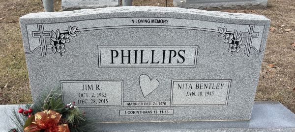 | Phillips, Jimmy Ray (Jim) | 2 Oct 1932 | 28 Dec 2015 | NI | 134 | 001 | Tombstone |