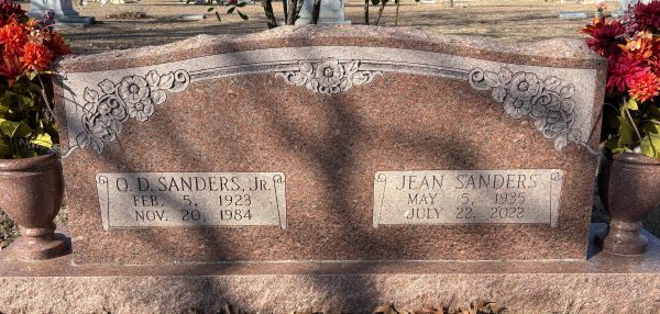 | Sanders, Jean Ellen nee Maxey | 5 May 1935 | 22 Jul 2022 | NI | 160 | 006 | Tombstone |