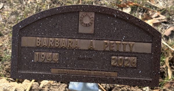 | Petty, Barbara Ann nee Canion | 21 Oct 1988 | 8 Mar 2026 | NII | 180 | 001 | Marker |