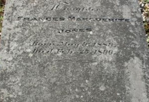 | Jones, Frances Marguerite | 9 May 1889 | 25 Feb 1890 | NEI | - | 132 | Tombstone |
