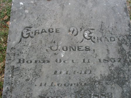 | Jones, Grace nee O'Grady | 11 Oct 1857 | 17 Sep 1889 | NEI | - | 132 | Tombstone |